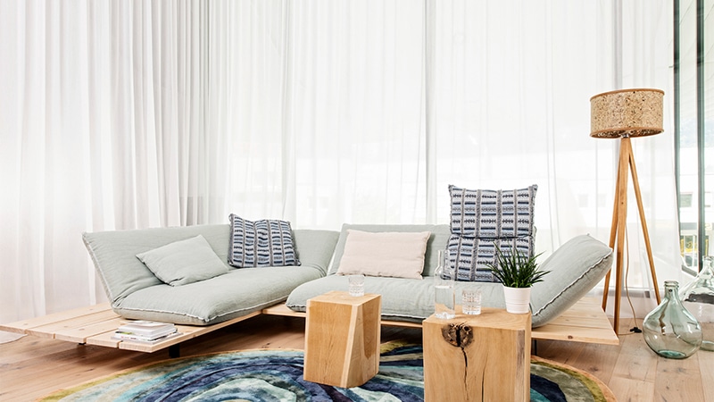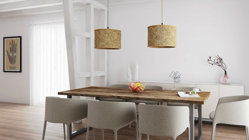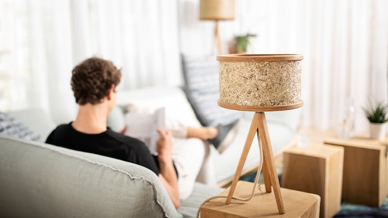 Die Almput Lampen sind als Ständer- oder Tischlampe zu haben. Der Ständer besteht bei beiden aus formstabilem Buchen- und Eichenholz. Er zeigt sich in einer leicht wirkenden, anmutigen Form, die zeitlos ist. Ein einzigartiger Blickfang für deine Gäste und für dich selbst. Das Kabel besteht zu 100 % aus Naturfasern.