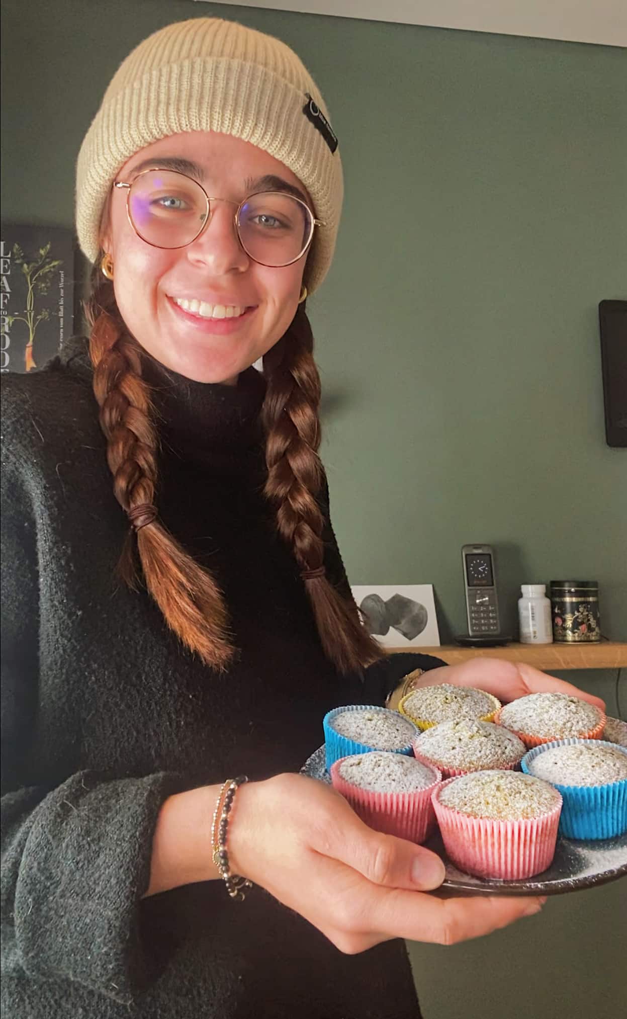 Bei 180 °C für ca. 19 Minuten backen. Um zu prüfen, ob die Muffins durch sind, kannst du mit einem Zahnstocher reinstechen. Wenn du ihn rausziehst, sollte nichts daran kleben bleiben. Ansonsten noch etwas weiterbacken. So einfach ist das Ganze!