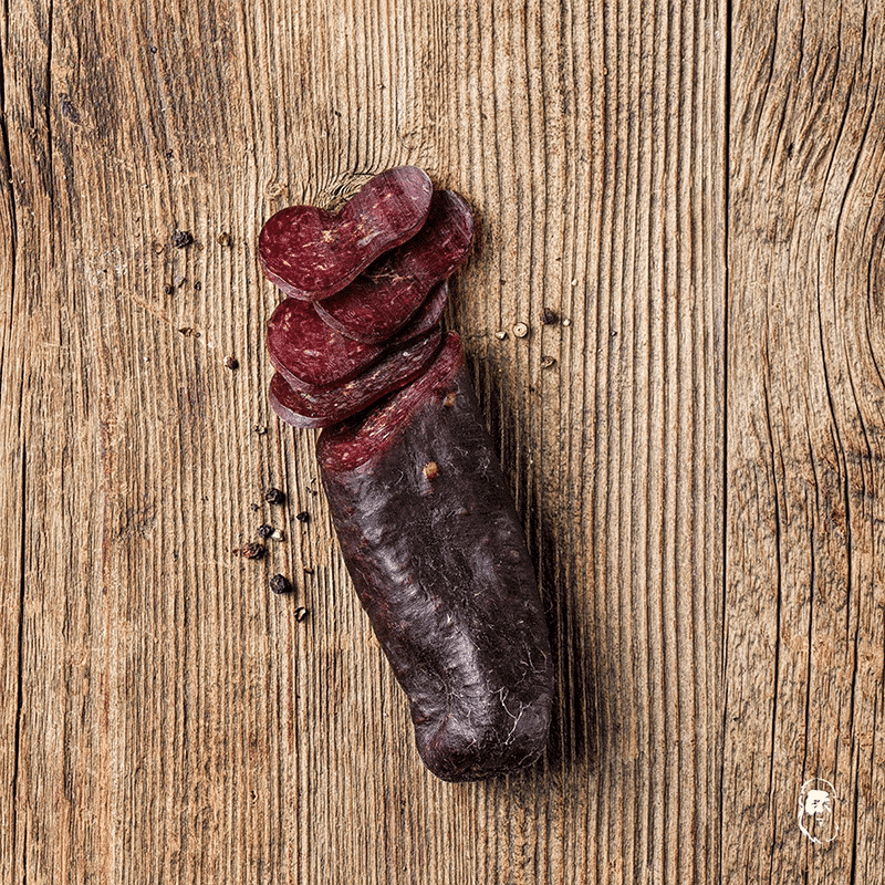 Bei diesem Trockenfleisch steht das Tierwohl an erster Stelle. Alpahirt stellt hochwertige Produkte ohne Nitritpökelsalz und andere künstliche Zusätze her.