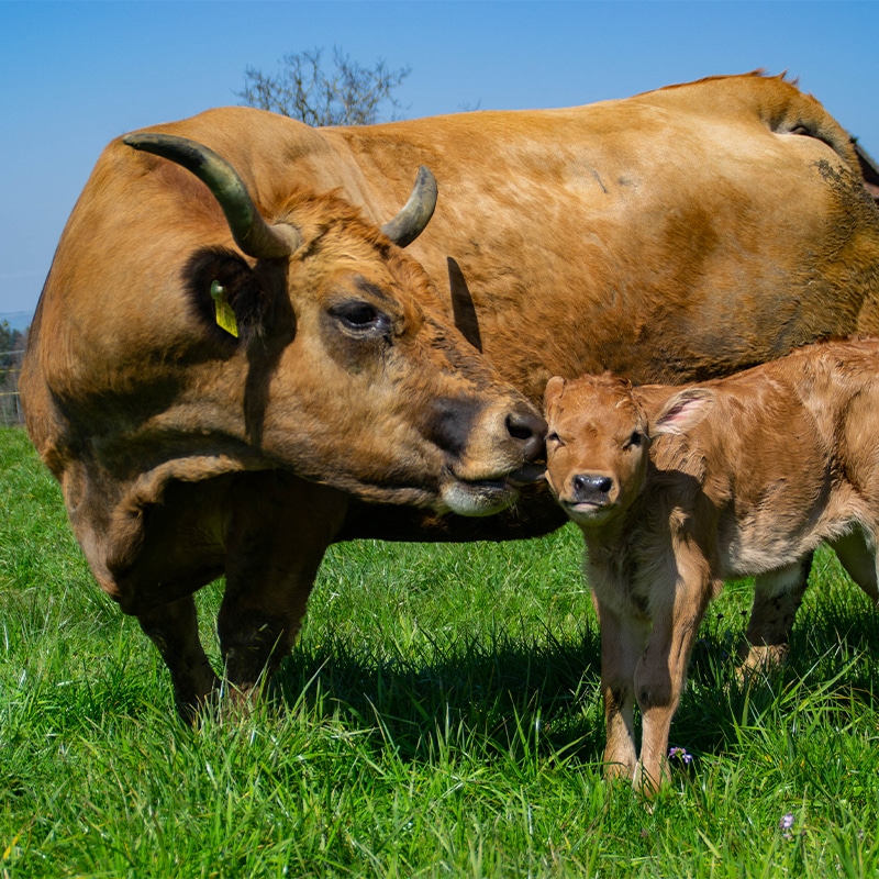 die Jungrinder wachsen in Mutterkuhhaltung auf
