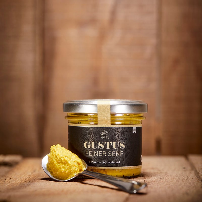 Ein traditioneller Senf, mild und schlicht. Gustus ist ein Alleskönner für deine Küche und passt in jedes Rezept, wo Senf dazu gehört. Seine milde Süsse erhält der steingemahlene feine Schweizer Senf vom Birnel, einem Bio-Birnendicksaft.
