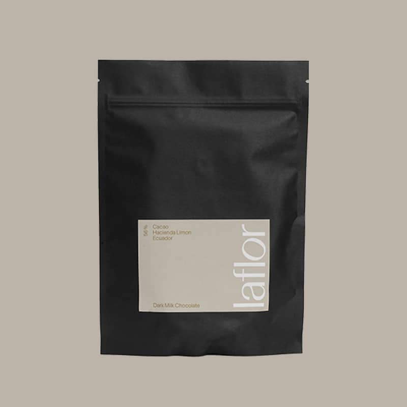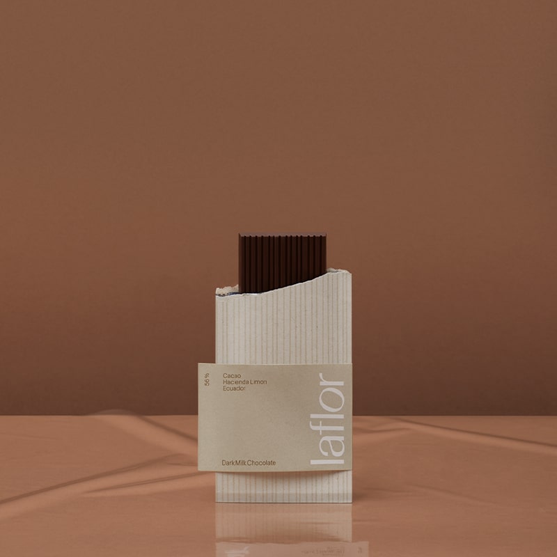 Die Verpackung der La Flor-Schokoladen besteht aus 100 % rezykliertem Material, das mit erneuerbaren Energien hergestellt wurde und sie ist kompostierbar. Gleichzeitig erfüllt die Verpackung die hohe Anforderung, luft- und lichtdicht zu sein, damit das einzigartige Aroma der Schokolade erhalten bleibt.