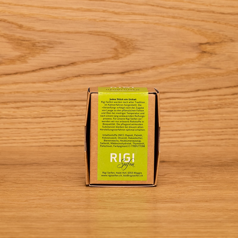 Die Heublumenseife stellt der Haldihof im Kaltverfahren nach alter Tradition her. Die Verseifung geschieht, nachdem Lauge zu den pflanzlichen Fetten und Ölen zugegeben wird und das Gemisch bei niederer Temperatur lange reift. Durch das zeitaufwendige Verfahren bleiben pflegende Inhaltsstoffe wie Glycerin in den Seifen enthalten. So verfahren heute nur noch wenige Seifenhersteller. Solche, die sich Zeit nehmen und echte Qualität produzieren möchten. Der Haldihof ist einer davon.