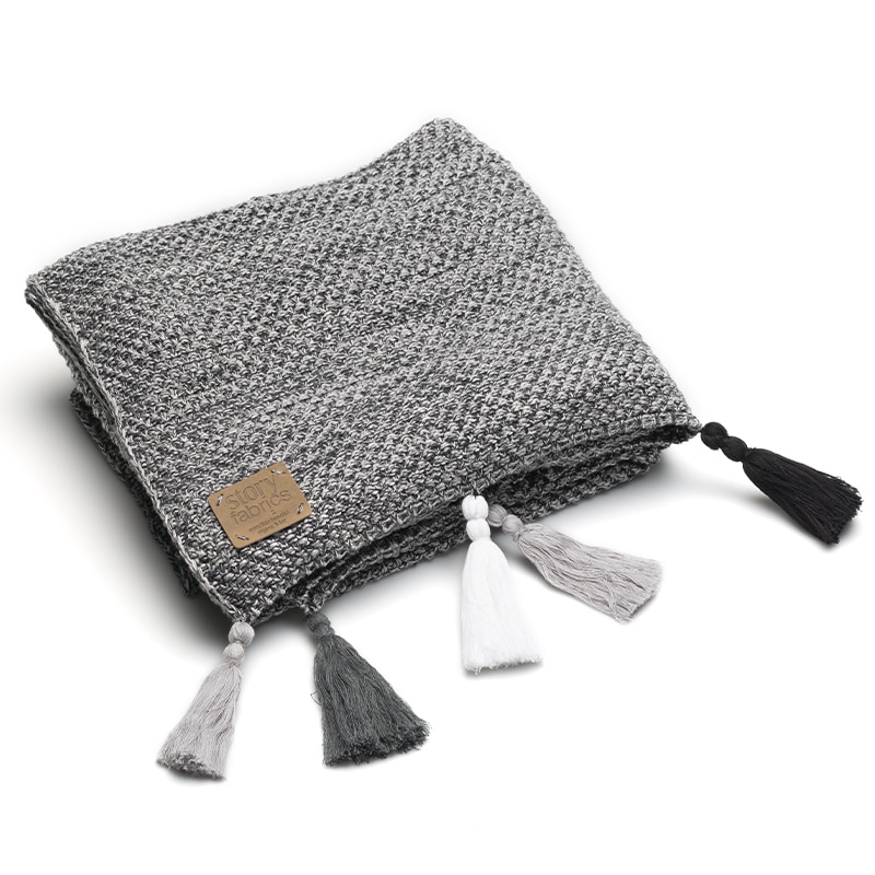 Die Strickdecke mit den verspielten Tasseln besteht zu 100 % aus biologischer und Fairtrade-zertifizierter Baumwolle. Um unsere natürlichen Ressourcen zu schonen, werden die Decken aus Restgarn gestrickt.