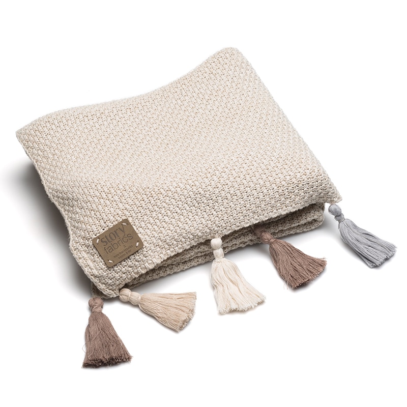 Strickdecke mit Tasseln beige
